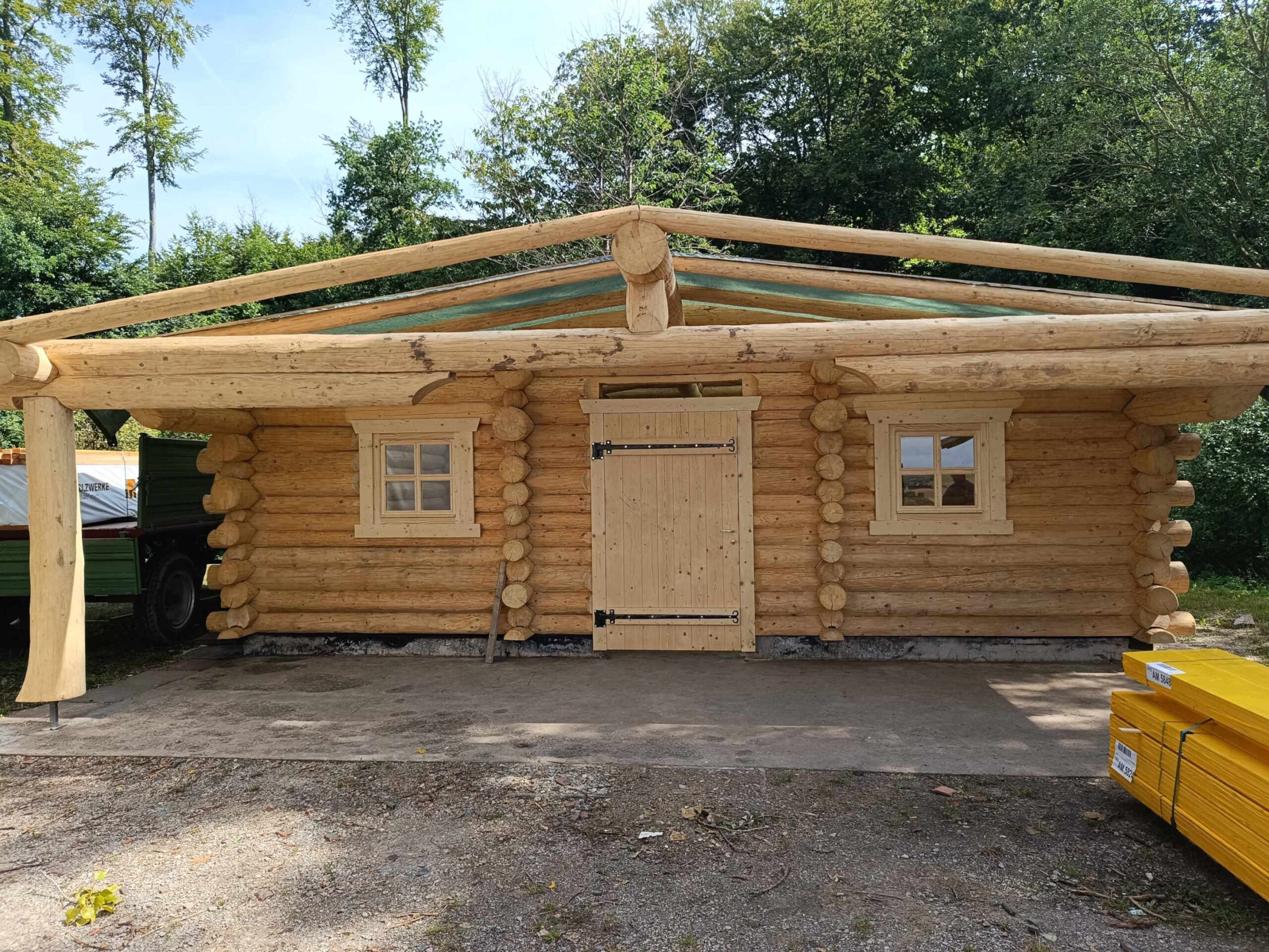 Sie können das Blockhaus als Bausatz oder komplett mit Dach, Fenster und Türen erwerben. Der Bausatz besteht aus den Wänden und der Sparrenlage für das Dach. Jedes Blockhaus ist ein Unikat in seinem Aussehen.