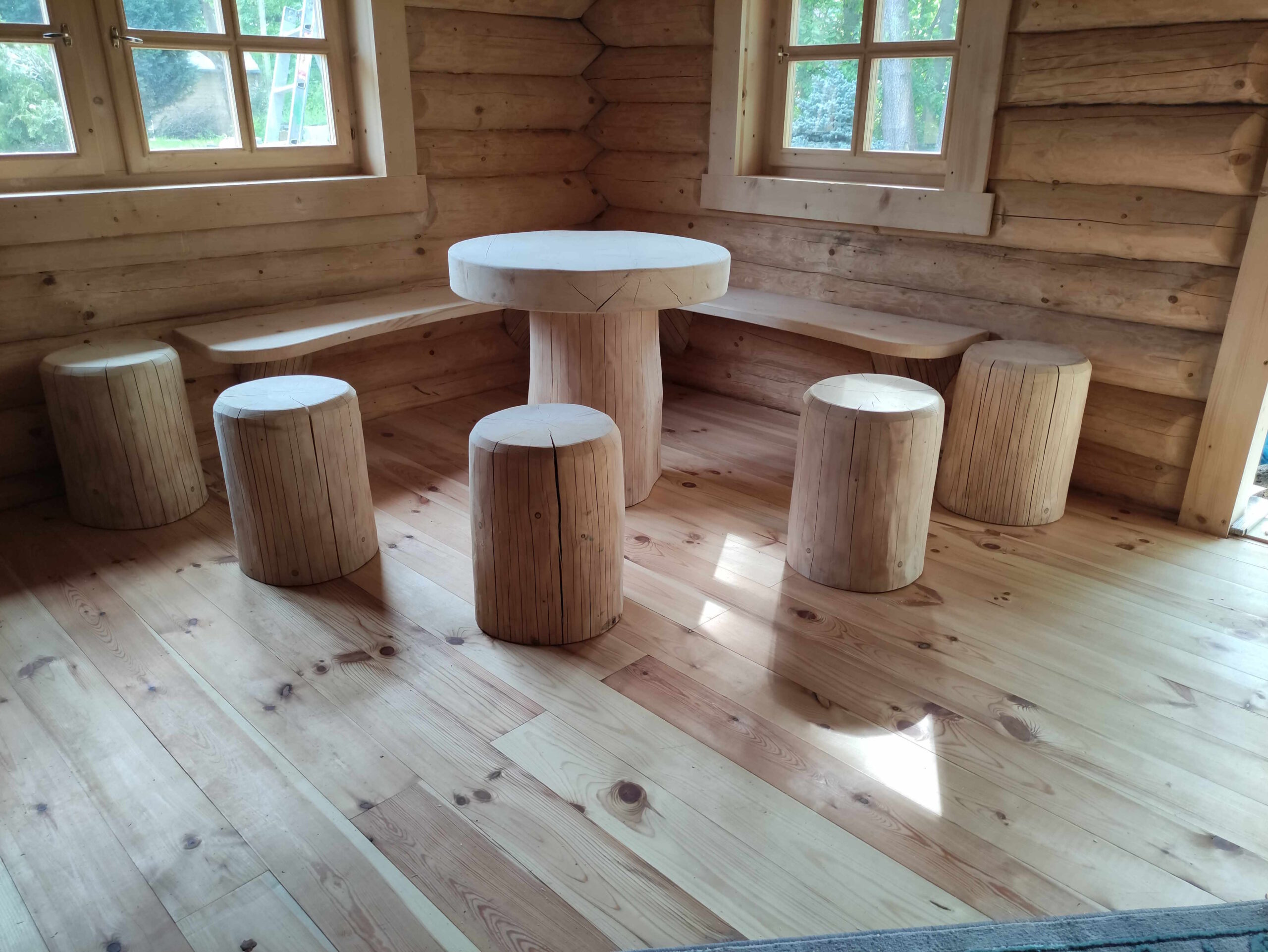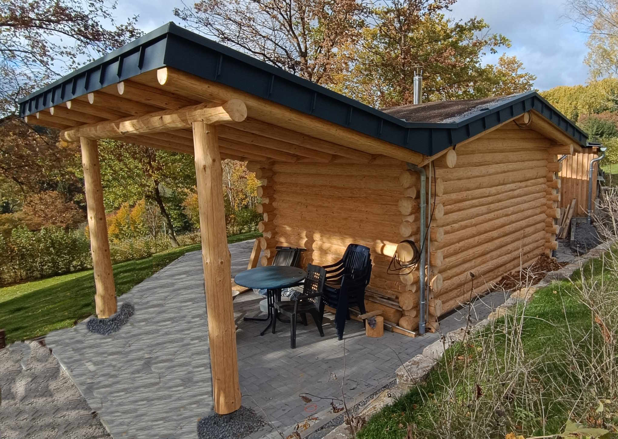 Hierzu hat man die Bäume gefällt, entrindet und aufeinander angepasst (Naturstammbauweise). An den Ecken wurden die Stämme mit der Axt behauen, um einen Kreuzverband zu schaffen. Die Zwischenräume wurden meist mit Moos oder Schafwolle abgedichtet. In diesem Stil bauen wir heute noch unsere Blockstammhäuser. Hier kommen noch die Urigkeit der Stämme und die Natürlichkeit der Bäume zur Geltung. Wir verwenden heute an Stelle der Axt Hochleistungsmotorsägen. Jeder Stamm wird auf den vorherigen Stamm angepasst, was sehr viel Erfahrung und Geschick erfordert. Unser Blockhausbauer übt dieses Handwerk seit über 30 Jahren aus und hat ein Team von erfahrenen Mitarbeitern.